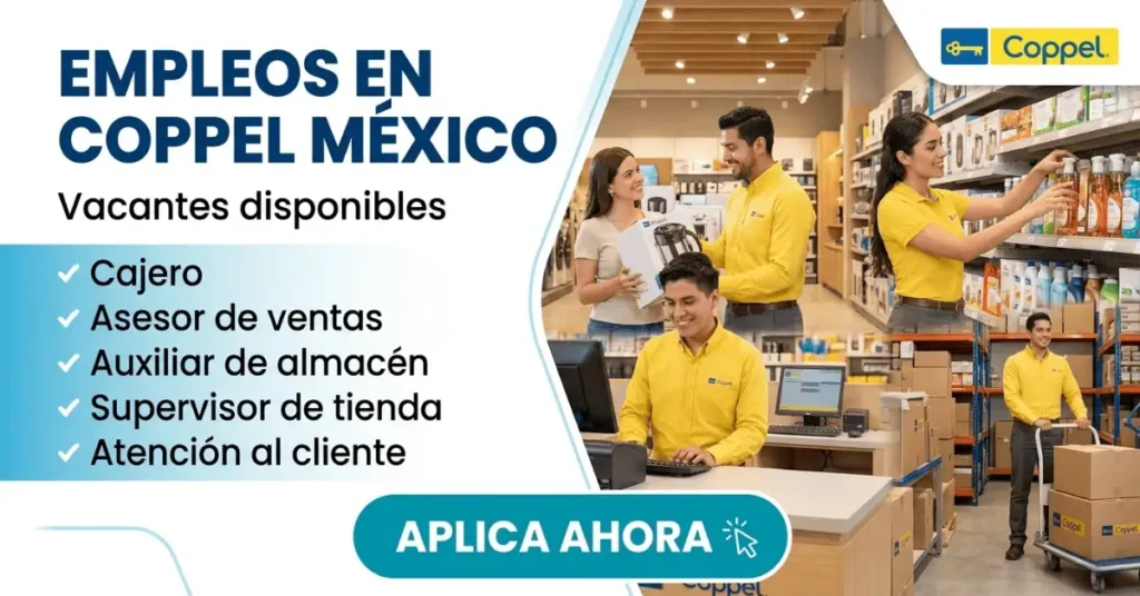 Descubre cómo trabajar en Coppel México en 2026. Conoce las vacantes disponibles, requisitos y los pasos para postular a un empleo en una de las empresas comerciales más grandes del país.